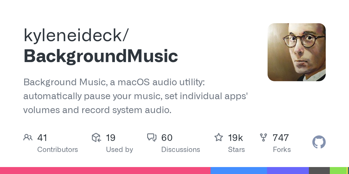 ※ページの中盤にDownloadリンクがあります。GitHub - kyleneideck/BackgroundMusic: Background Music, a macOS audio utility: automatically pause your music, set individual apps' volumes and record system audio.Background Music, a macOS audio utility: automatically pause...
